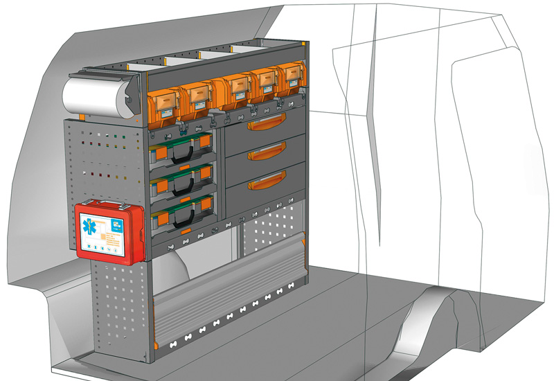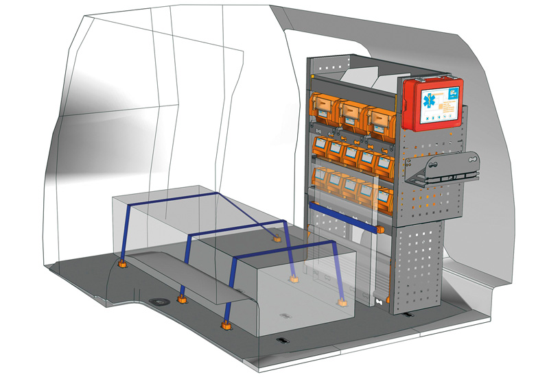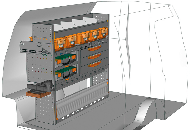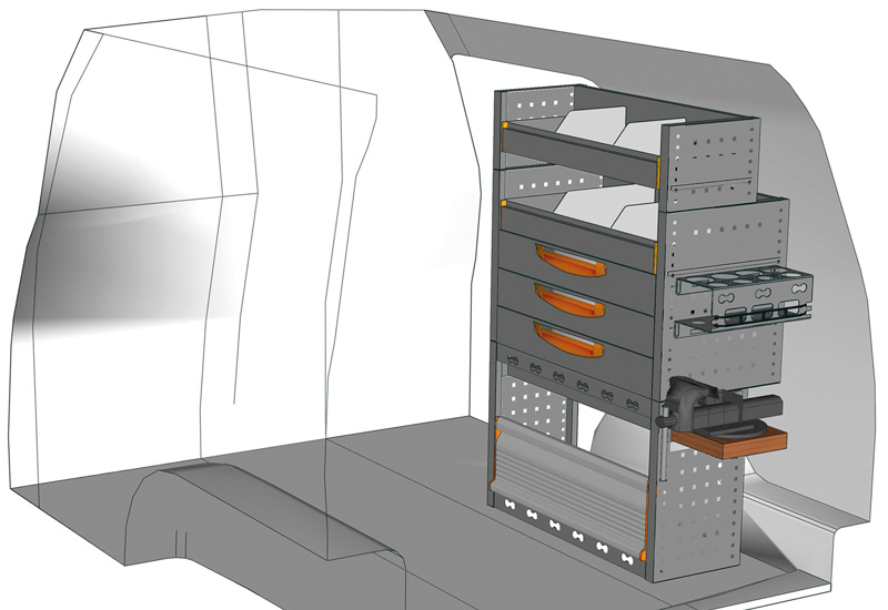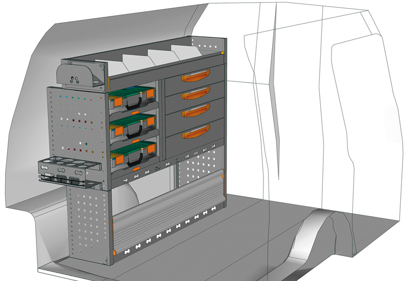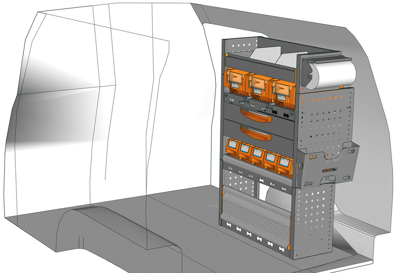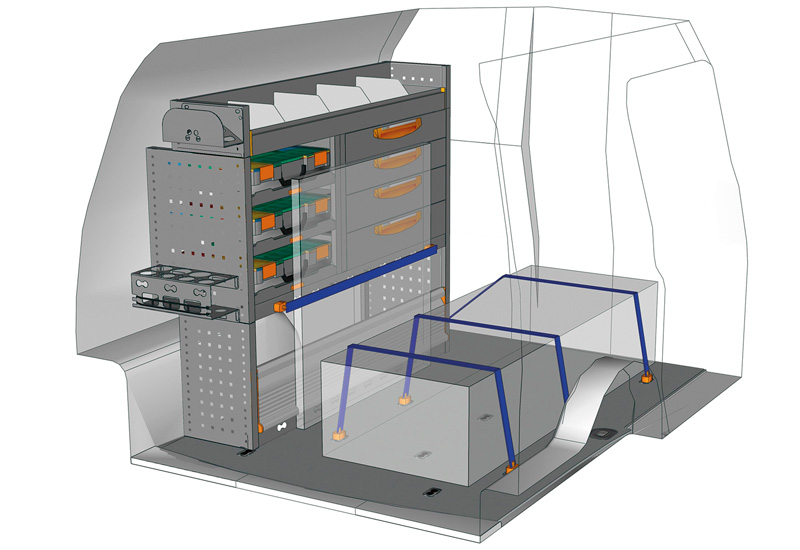 Fahrzeugeinrichtung für Profis Caddy L1 H1. Hier finden Sie Standardlösungen von Fahrzeugeinrichtungen für Volkswagen Caddy (Radstand 2682 mm).