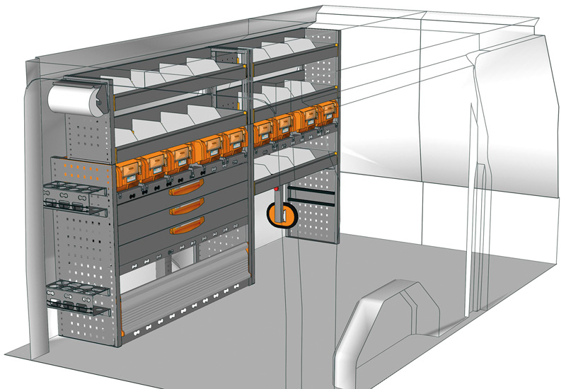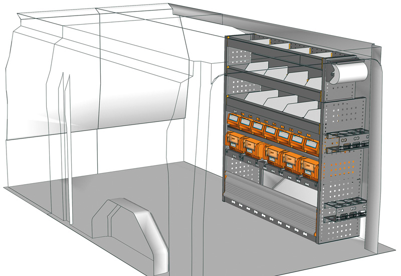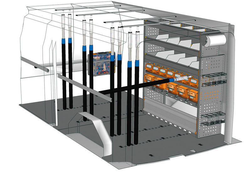 Fahrzeugeinrichtung für Custom L2 H1. Hier finden Sie Standardlösungen von Fahrzeugeinrichtungen für Ford Custom (Radstand 3300 mm).