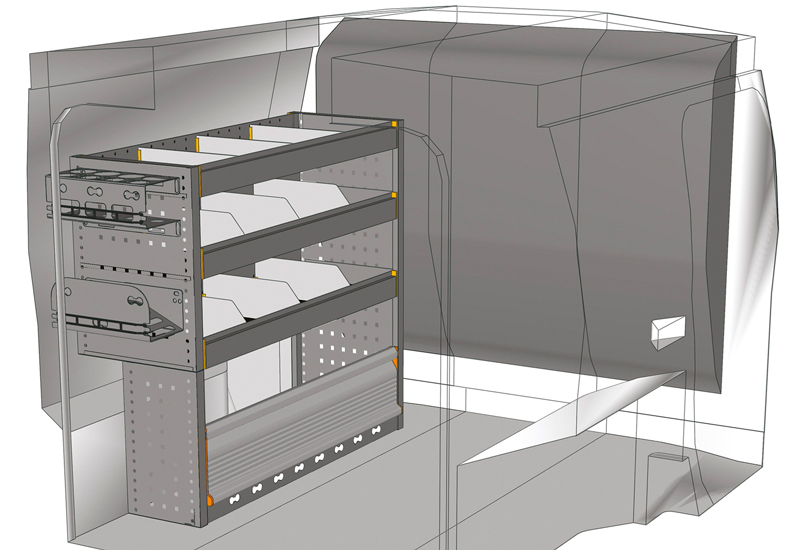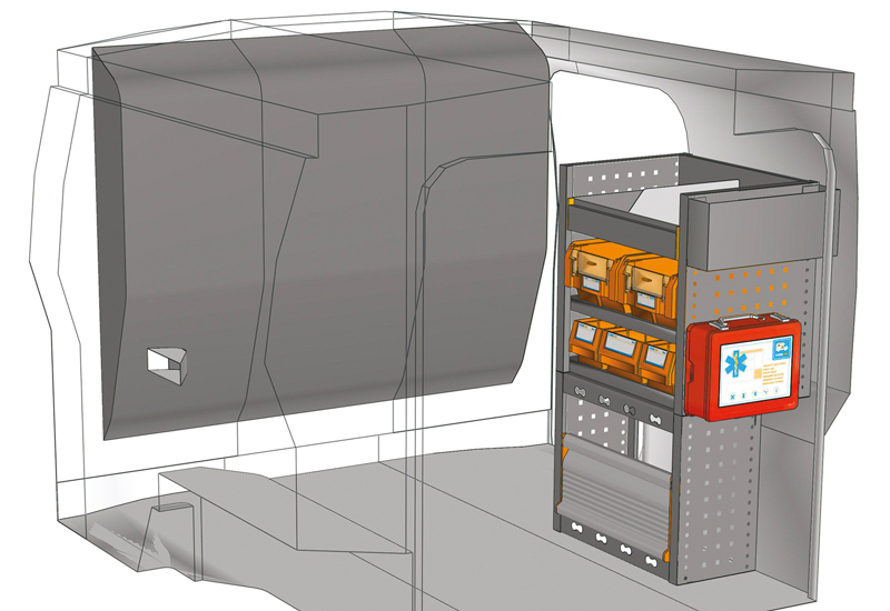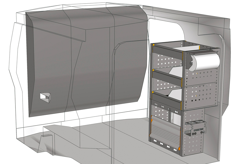 Fahrzeugeinrichtung für Profis Fiorino L1 H1. Hier finden Sie Standardlösungen von Fahrzeugeinrichtungen für Fiat Fiorino (Radstand 2513 mm).