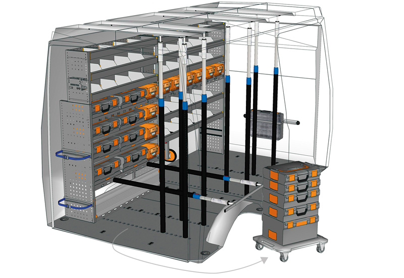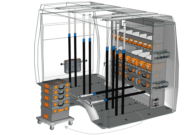 Fahrzeugeinrichtung für Profis Transporter Daily L2 H2 / 3520 H2. Hier finden Sie Standardlösungen von Fahrzeugeinrichtungen für Daily (Radstand 3520 mm).