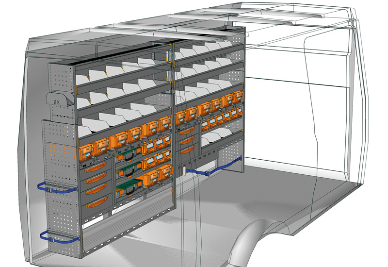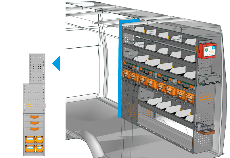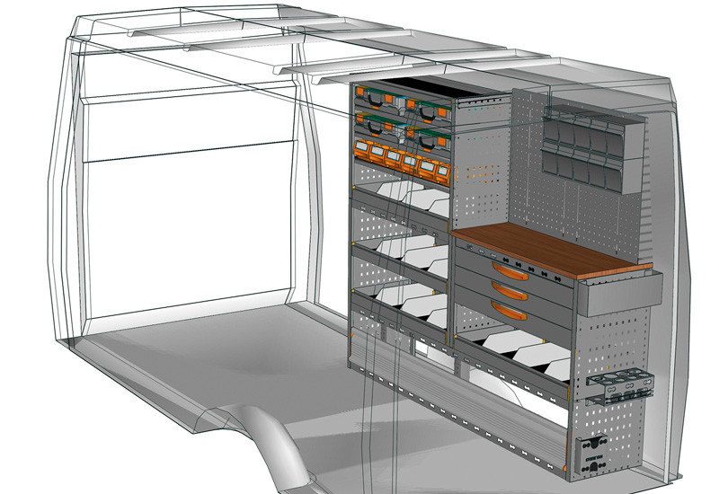 Fahrzeugeinrichtung für Profis Daily L2L H2 / 3520L H2. Hier finden Sie Standardlösungen von Fahrzeugeinrichtungen für Daily (Radstand 3520 mm).