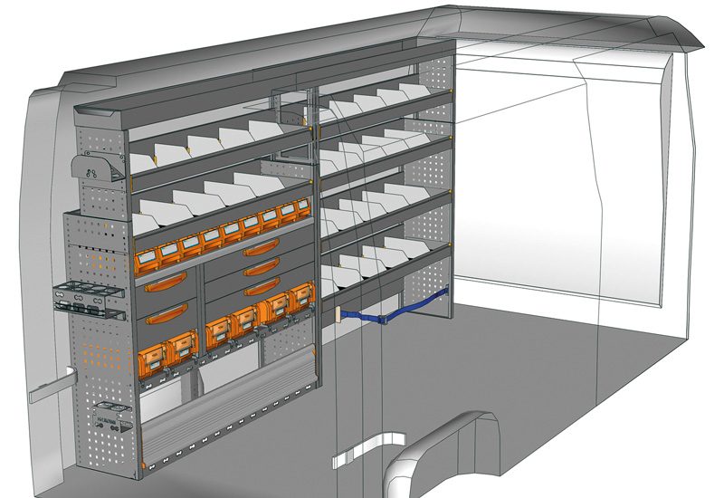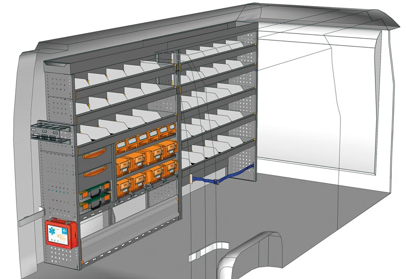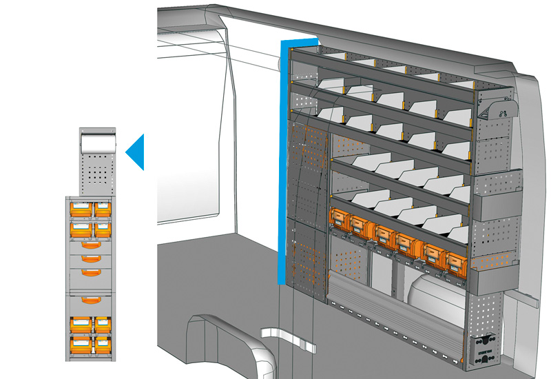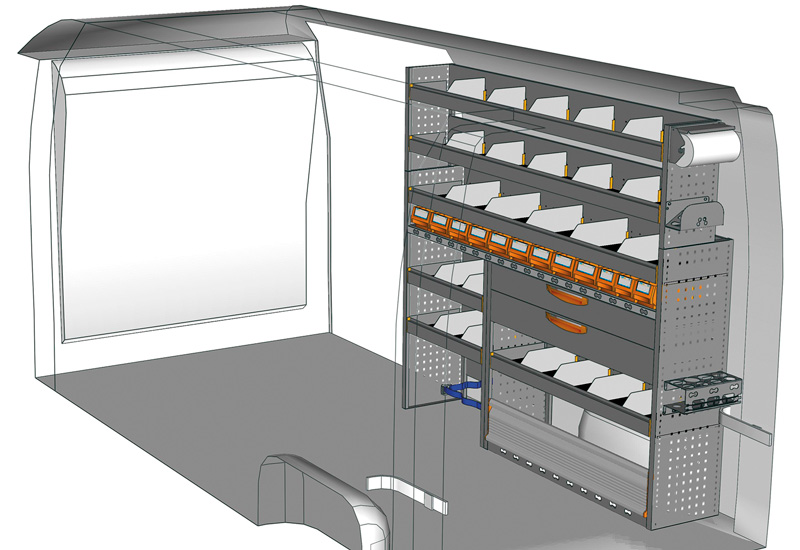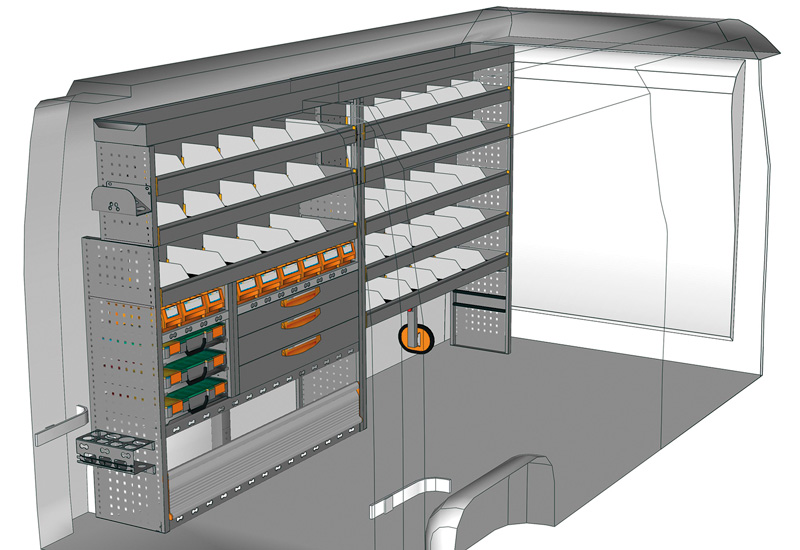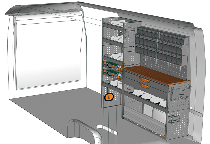 Fahrzeugeinrichtung für NV400 L3 H2 / H3. Hier finden Sie Standardlösungen von Fahrzeugeinrichtungen für NISSAN NV400 / Interstar Frontantrieb. (Radstand 4332 mm)