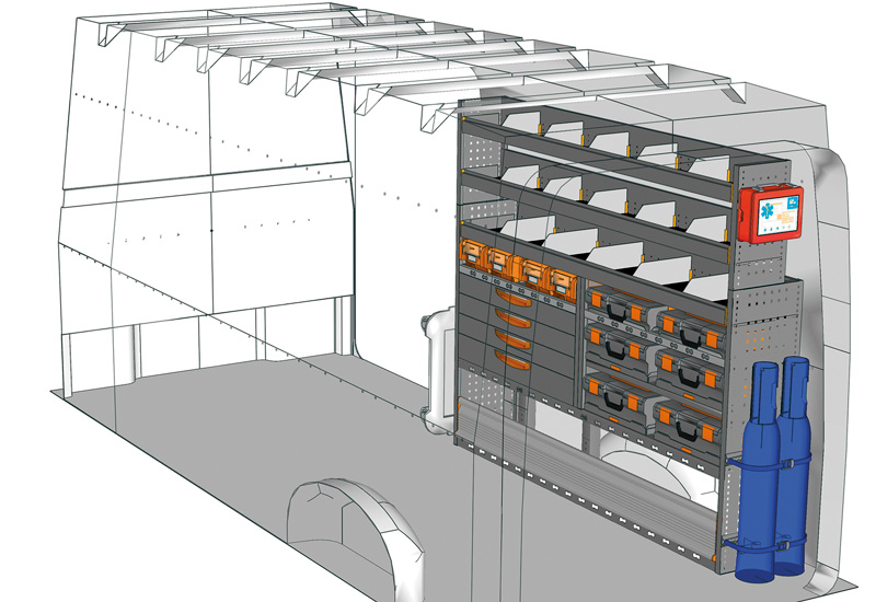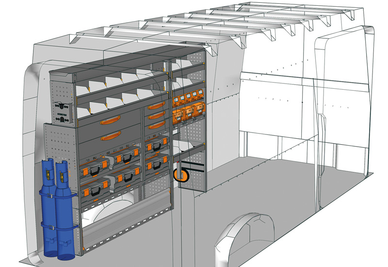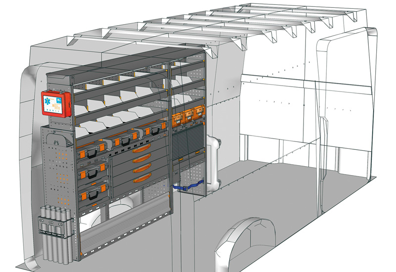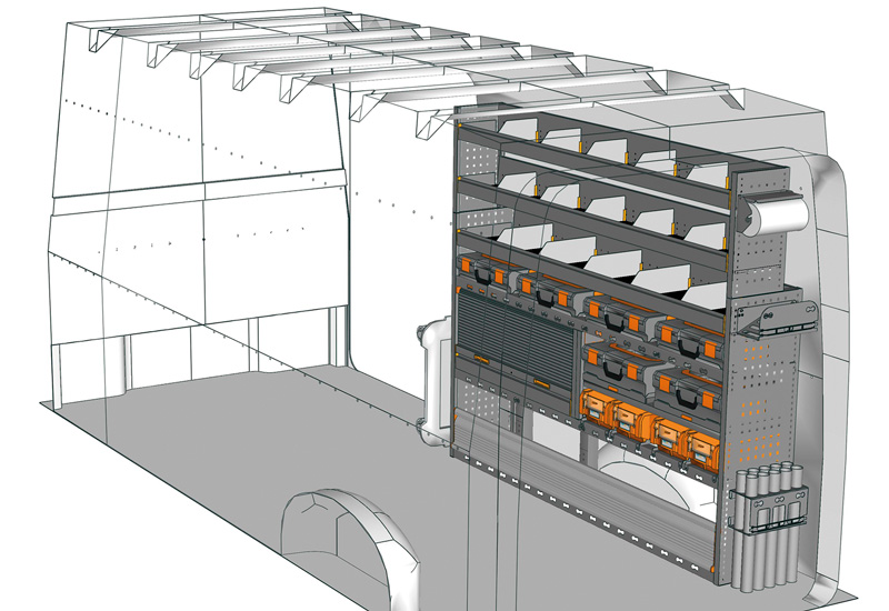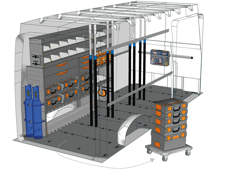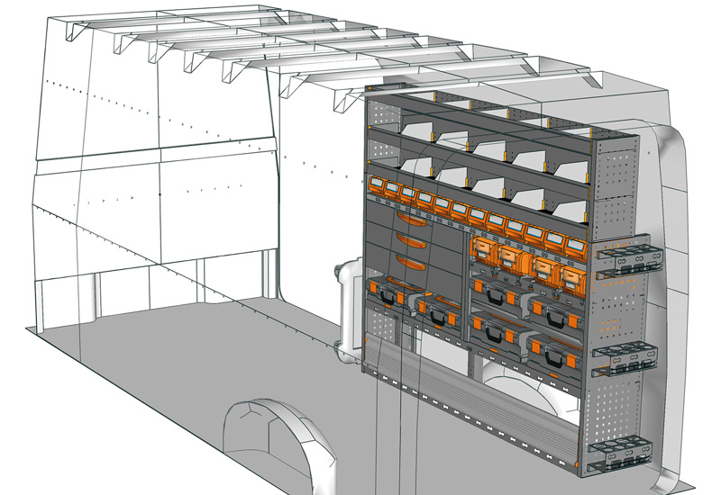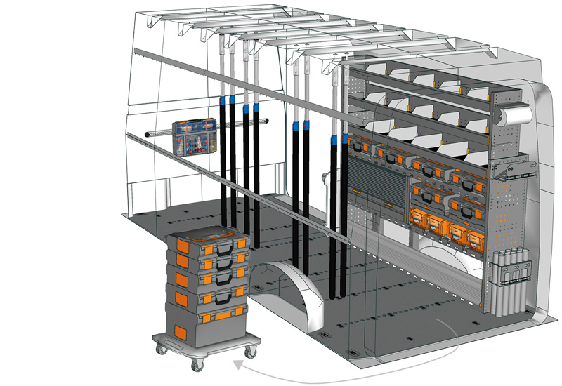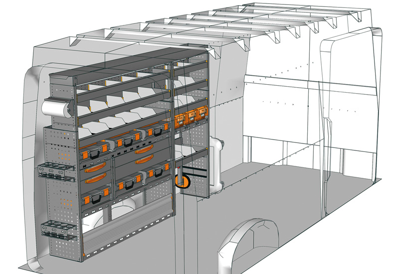Fahrzeugeinrichtung für TGE Lang, Hochdach. Hier finden Sie Standardlösungen von Fahrzeugeinrichtungen für MAN TGE (Radstand 4490 mm).