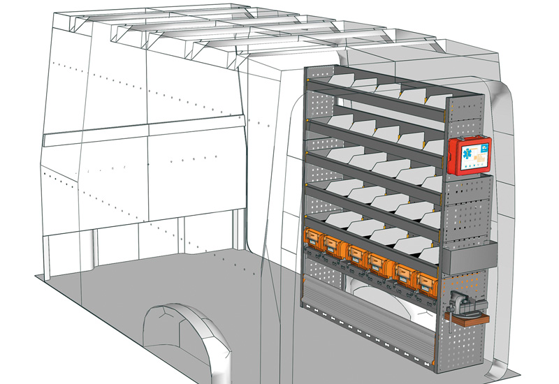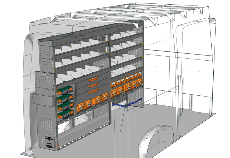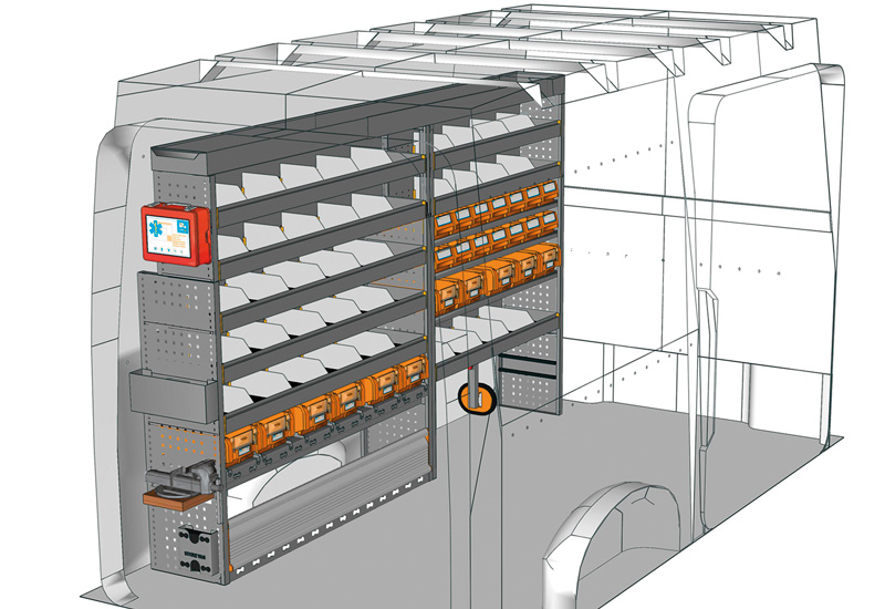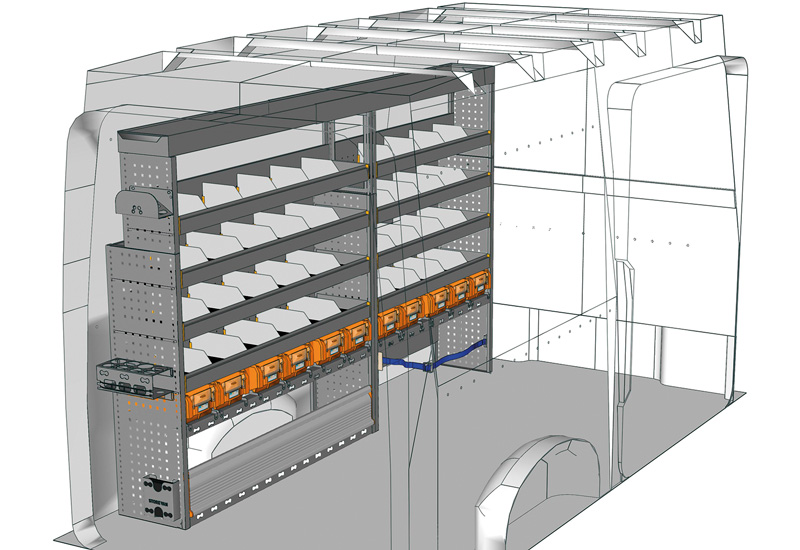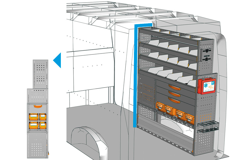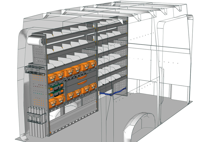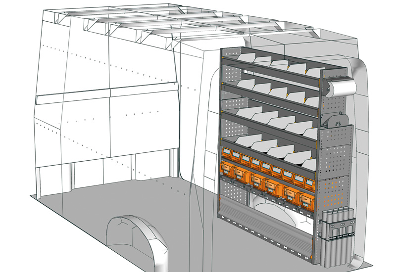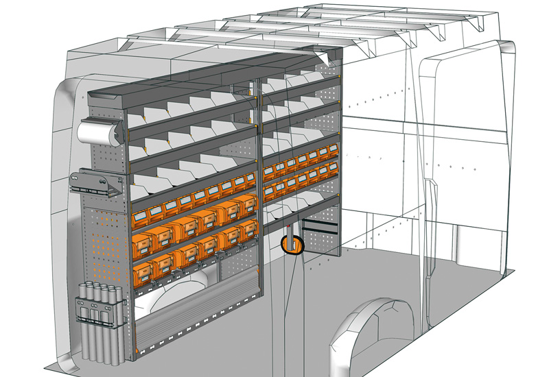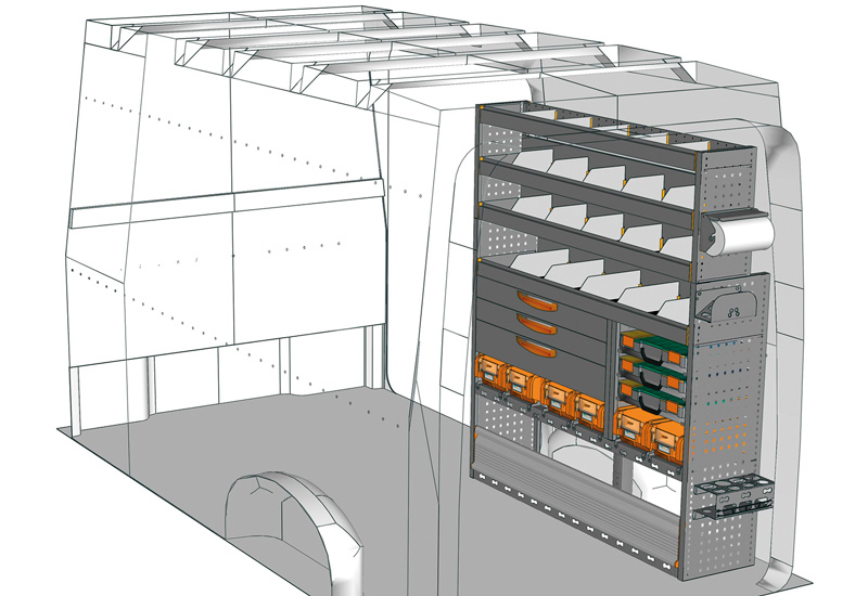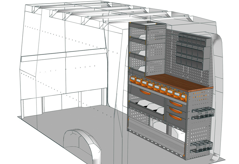 Fahrzeugeinrichtung für TGE Standard, Hochdach. Hier finden Sie Standardlösungen von Fahrzeugeinrichtungen für MAN TGE (Radstand 3640 mm).