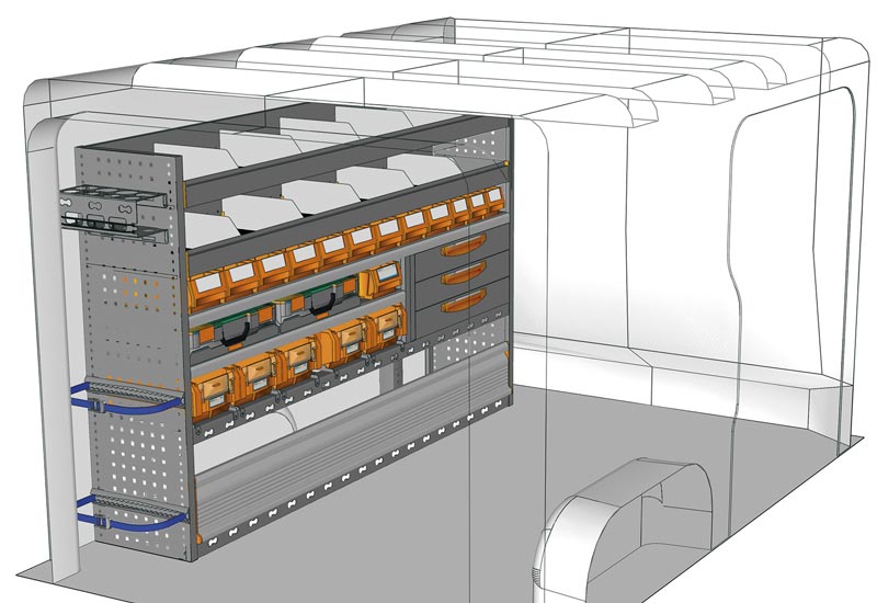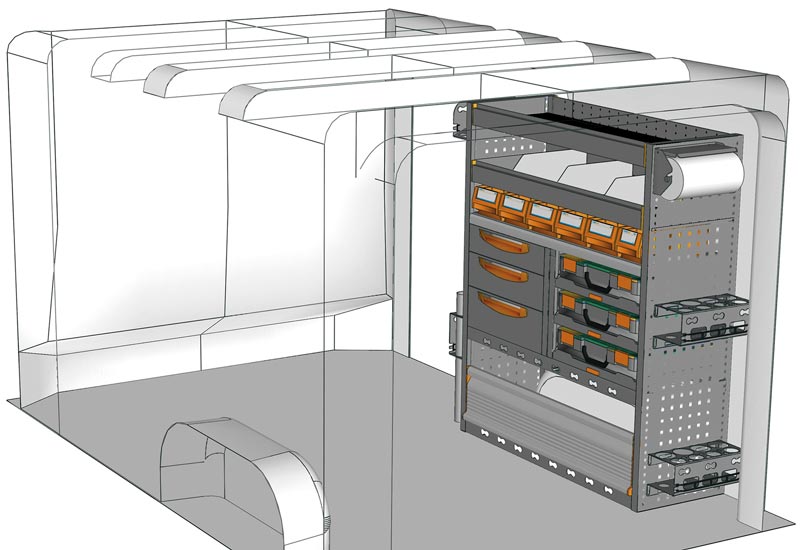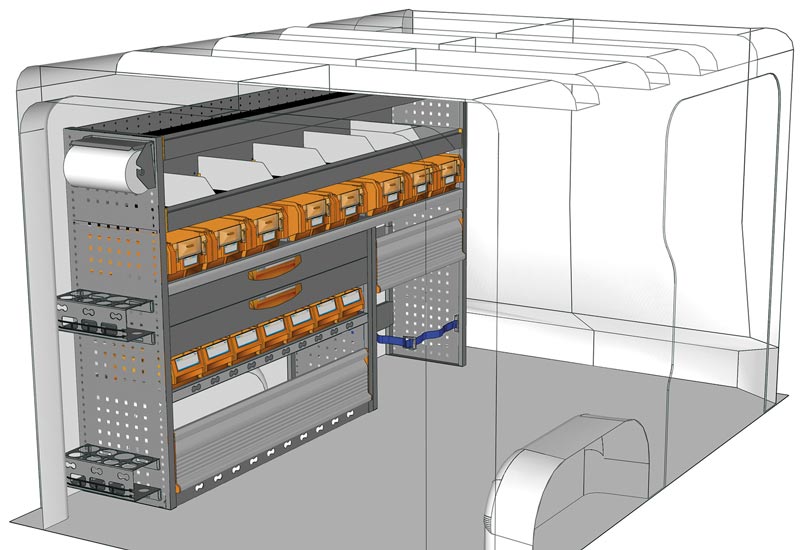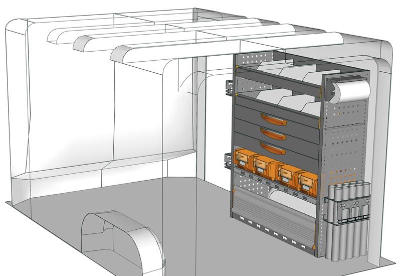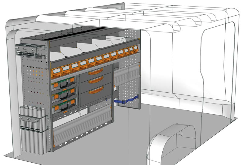 Fahrzeugeinrichtung für Vivaro L1 H1. Hier finden Sie Standardlösungen von Fahrzeugeinrichtungen für Opel Vivaro. (Radstand 3098 mm)